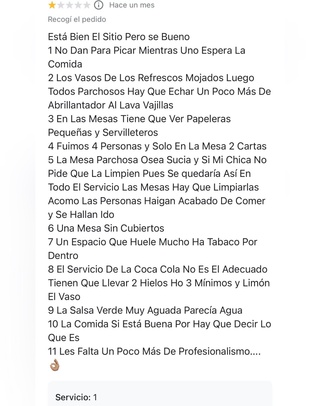 Esa sucesión de consejos tiene cosas como la cantidad de hielos que hay que poner en un vaso cuando se pide un refresco, cómo deberían limpiarse las mesas, etcétera. Todo con una ortografía bastante cuestionable. Es decir, no solo opinó, sino que lo hizo con una forma y un fondo que provocaron aún más debate que el contenido en sí.