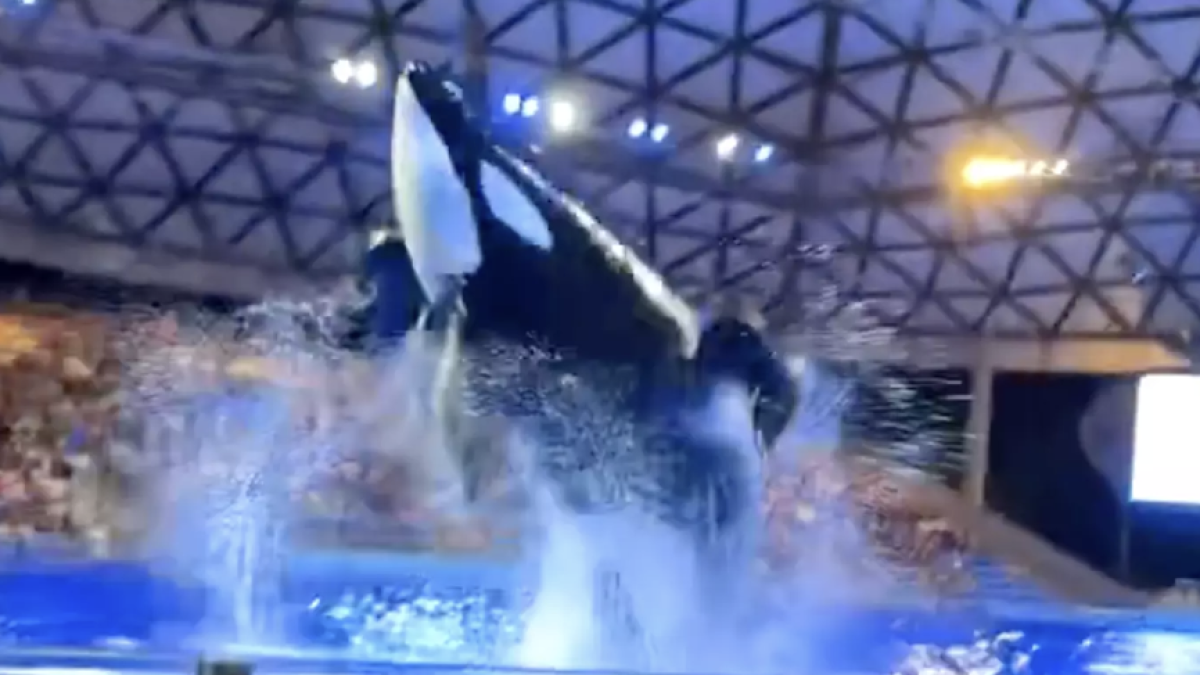 En pleno espectáculo, con la atención de todos centrada en los movimientos fluidos del enorme cetáceo, el público esperaba ese salto que promete mojar a los más atrevidos que se sientan en las primeras filas, comúnmente conocidas como la «zona de salpicaduras». Pero lo que la orca dejó flotando en el tanque fue algo mucho más impactante. Y no, no fue una pirueta lo que causó asombro: fue una evacuación intestinal inesperada que tiñó el agua de un repulsivo marrón.